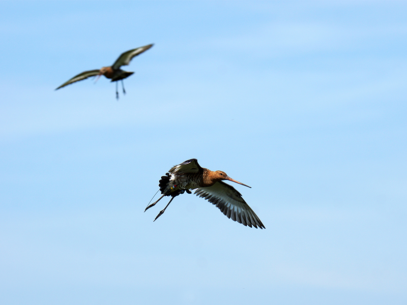 Um das Verhalten geschützter Wiesenvögel genauer zu erforschen, versahen Mitarbeiter des Niedersächsischen Landesbetriebs für Wasserwirtschaft, Küsten- und Naturschutz (NLWKN) auch 2021 wieder zahlreiche Uferschnepfen in den EU-Vogelschutzgebieten am Dümmer und der Unterelbe mit Mini-Satellitensendern. Erstmals konnten die Forscher beobachten, dass ein Uferschnepfenweibchen in einer Saison in zwei unterschiedlichen Schutzgebieten Nachwuchs bekam. „Das ist ein echtes Phänomen!“, erläutert Heinrich Belting, im NLWKN verantwortlich für das LIFE IP Projekt „GrassBirdHabitats“, dem EU-Nachfolgeprojekt des LIFE+ Projekts „Wiesenvögel“. „Für uns ist es das erste Mal, dass wir das beobachten. Das spricht für ein ökologisch intaktes Brutgebiet.“