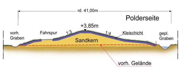 - 3,1 km Deichneubau, 0,8 km Deichverstärkung