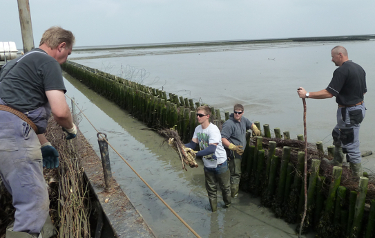 Mühevolle Handarbeit im Küstenschutz – der Lahnungsbau