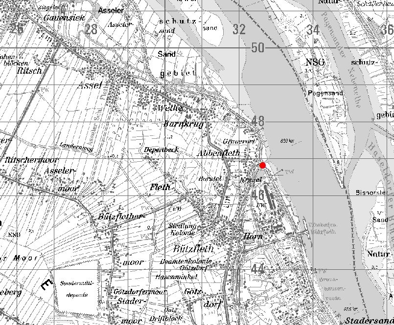 Das Abbenfleth-Sperrwerk wurde 1971 in Betrieb genommen, es liegt in der neuen Deichlinie nahe der Elbe bei Stadersand und schützt die Stadt Stade und das Industriegebiet Bützflether Sand.