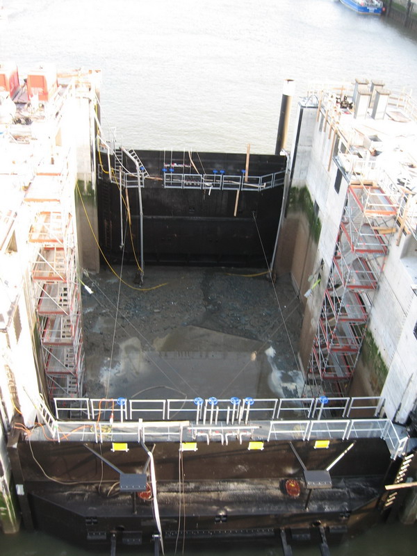 - Ausbau, Umbau (Ertüchtigung) und Wiedereinbau der vorhandenen Stemmtore des bestehenden Sperrwerkes, deren zugehörige Bauteile und der hydraulischen Anlagen.