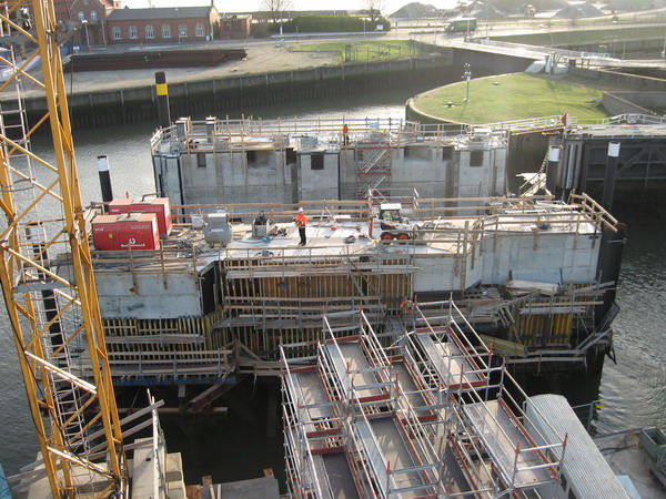 Ortbetonwände des neuen Sperrwerkes