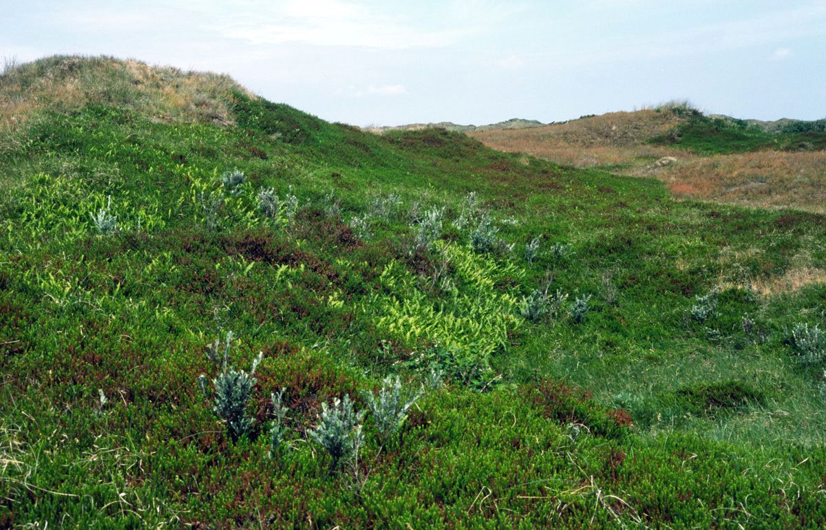Küstendünen-Heide aus Besenheide (z.T. weißblütig); Wangerooge; E8.04; KDC [FFH 2150]
