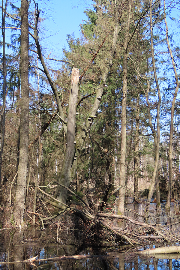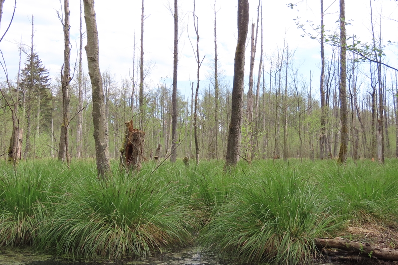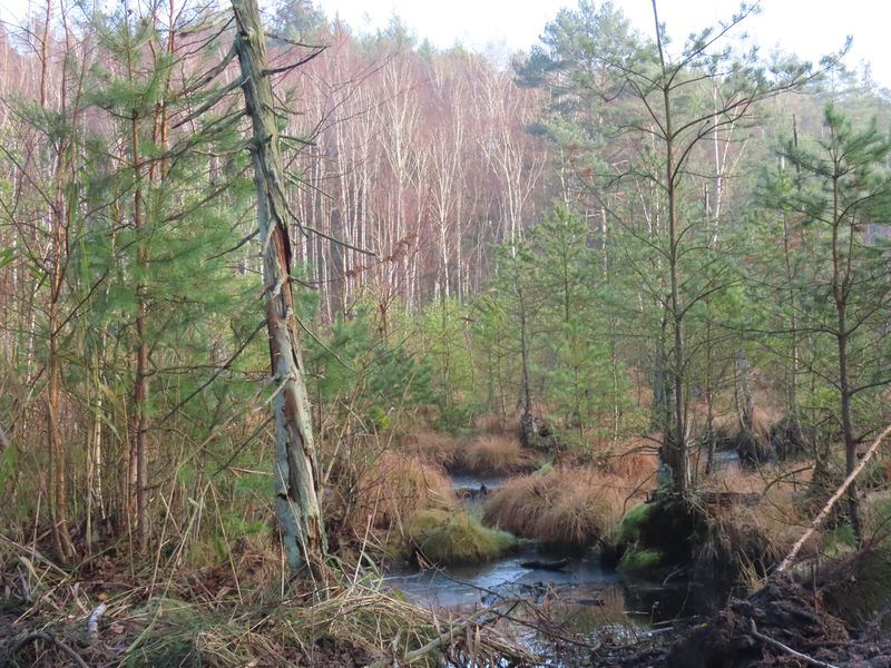 Die Moore im Gebiet waren ursprünglich überwiegend waldfrei. Erst durch die starke Entwässerung wurde ein Waldwachstum auf diesem Standort überhaupt möglich. Der torfige Moorkörper zerfiel und setzte gebundenes CO2 frei. Dieser fortschreitende Zersetzungsprozess wird durch die Wiedervernässung gestoppt und die reaktivierten Moore werden zukünftig voraussichtlich wieder waldfrei werden. Damit entwickeln wir im Projekt sehr dynamische und besonders schützenswerte Lebensräume.