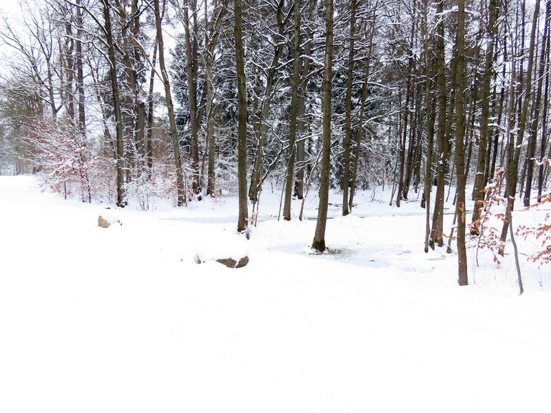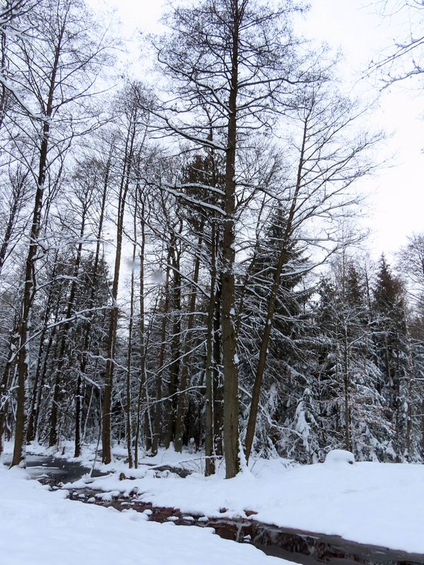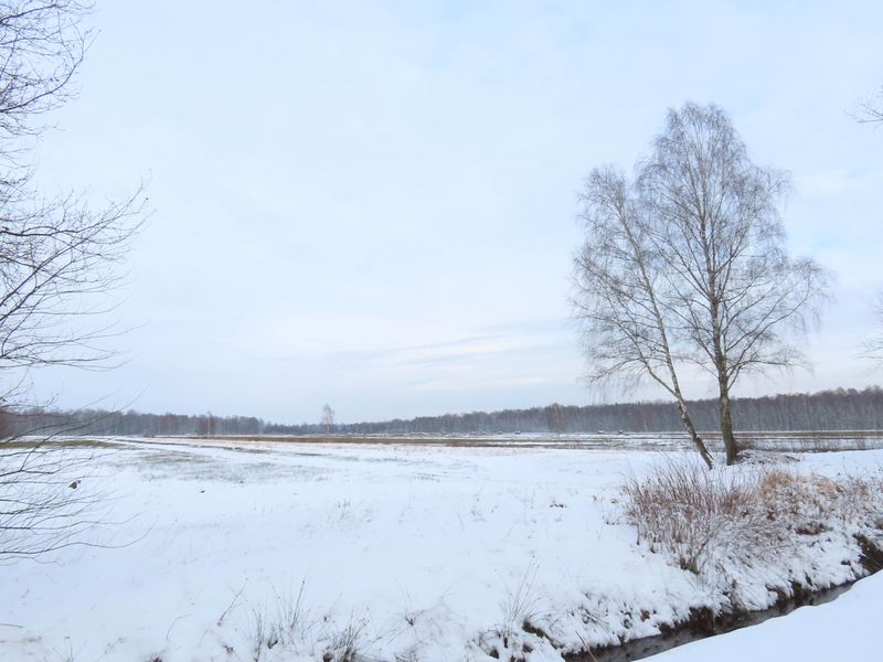 Vor dem Frühling bescherten uns ein paar herrliche Wintertage noch einmal viel Schnee. Die Projektgebiete zeigen sich entsprechend in weißer Pracht. Unter der pulvrigen Decke verbergen sich allerdings zwei Projektgebiete, die unterschiedlicher kaum sein könnten: Während das Gebiet rund um den Jafelbach in großen Teilen bewaldet ist, erscheint das Große Moor sehr offen und weitläufig.