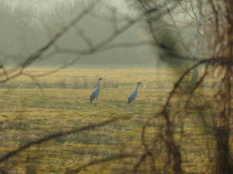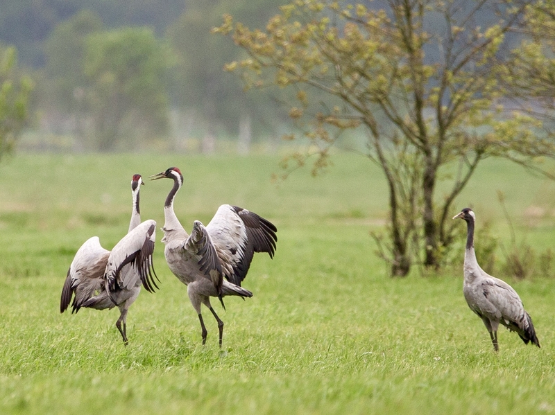 Kaum hat sich die weiße Pracht des vergangenen Monats in Wasser aufgelöst, erwacht die Natur aus ihrem Winterschlaf. Das zeigt sich auch in unseren Projektgebieten: Besonders im Großen Moor wird derzeit viel Lärm um den Frühling gemacht, denn die abwechslungsreiche Landschaft zieht so manchen Vogel an. Schon die ersten gefiederten Besucher des Jahres beweisen dabei eindrucksvoll, warum die Fläche als EU-Vogelschutzgebiet so schützenswert ist: Auf den großen, feuchten Grünlandflächen kann man die mittlerweile wieder in größeren Zahlen vorkommenden Kraniche bei der Nahrungssuche beobachten. Die vielen Gewässer im Naturschutzgebiet bieten ihnen gute Rast- und Brutbedingungen. Diese Vogelart wurde durch die allgemeine Entwässerung der Landschaft stark zurückgedrängt und breitet sich erst seit wenigen Jahren wieder in Nord- und Ostdeutschland aus.