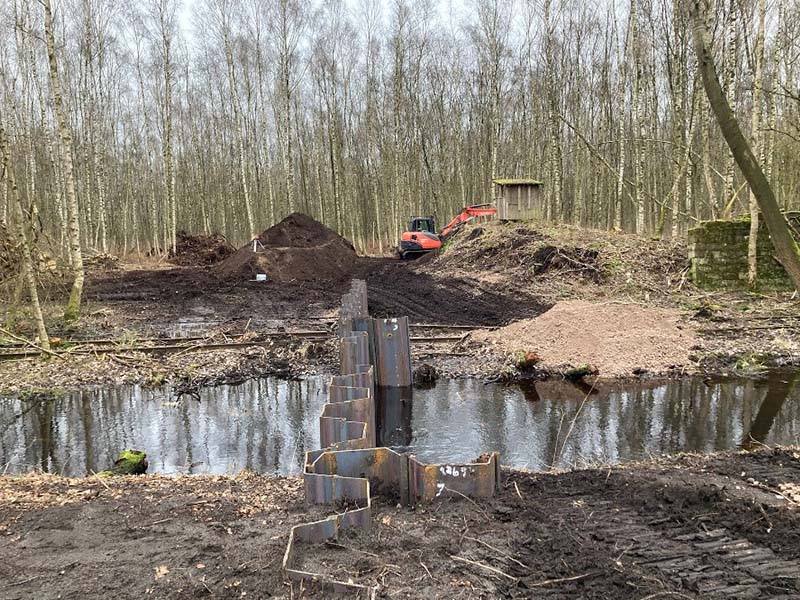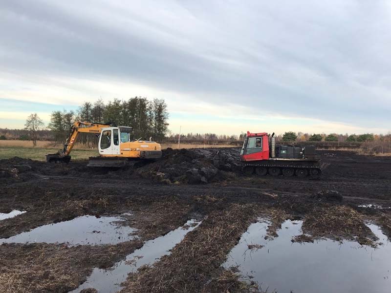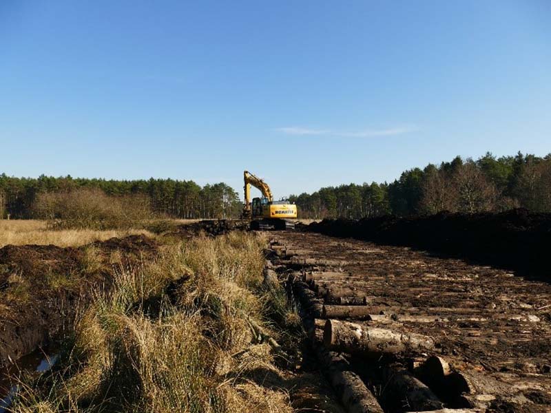 Die Bauarbeiten im Großen Moor liegen gut in der Planung, sind aber noch nicht abgeschlossen. Der Bau von weiteren 1.500m Torfverwallungen steht für den kommenden Spätsommer/ Herbst noch aus.