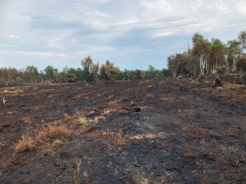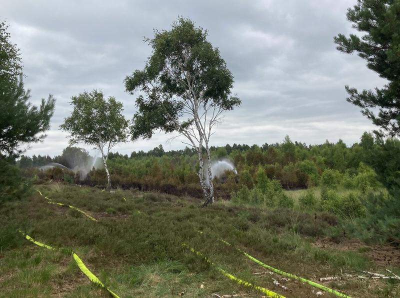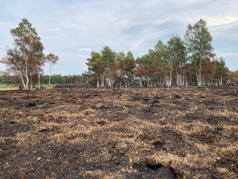 Der Sommer 2022 war einmal mehr geprägt von großer Hitze und lang anhaltender Trockenheit. Entsprechend häuften sich die Meldungen über Brände in Wäldern und auf Moorflächen. Am 21.07.2022 ereilte auch das Projektteam die Schreckensmeldung: ein Brand unmittelbar im Projektgebiet im Großen Moor bei Gifhorn.