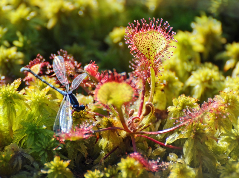 Gerade diese letzten sehr trockenen Jahre haben gezeigt, wie wichtig Moore für das Klima und den Landschaftswasserhaushalt sind. Die besonderen Bedingungen im Moor entstehen im Zusammenspiel von hohen Wasserständen und der moortypischen Vegetation. Das im Moor stehende Wasser ist sauerstoffarm und sauer, zudem setzten die torfbildenden Moorpflanzen, die sogenannten Sphagnum-Moose, Gerbstoffe frei. Unter diesen Bedingungen können sich nur wenige bodenlebende Organismen ansiedeln, wodurch die Zersetzung abgestorbener Pflanzenteile nur stark verlangsamt ablaufen kann.