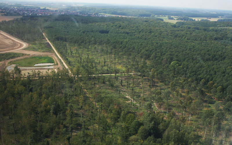 Anfang 2011 führte der Ausbau des Flughafens Braunschweig-Wolfsburg mit der Verlängerung der Start- und Landebahn in diese wertvollen Waldbestände hinein zu einem massiven Eingriff in den Wald. Ca. 30 ha Totalverlust sowie weitere ca. 30 ha mit Beeinträchtigungen der Bestände (Flächen für die Hindernisfreiheit) sollen durch Maßnahmen in einer Größe von über 160 ha kompensiert werden.