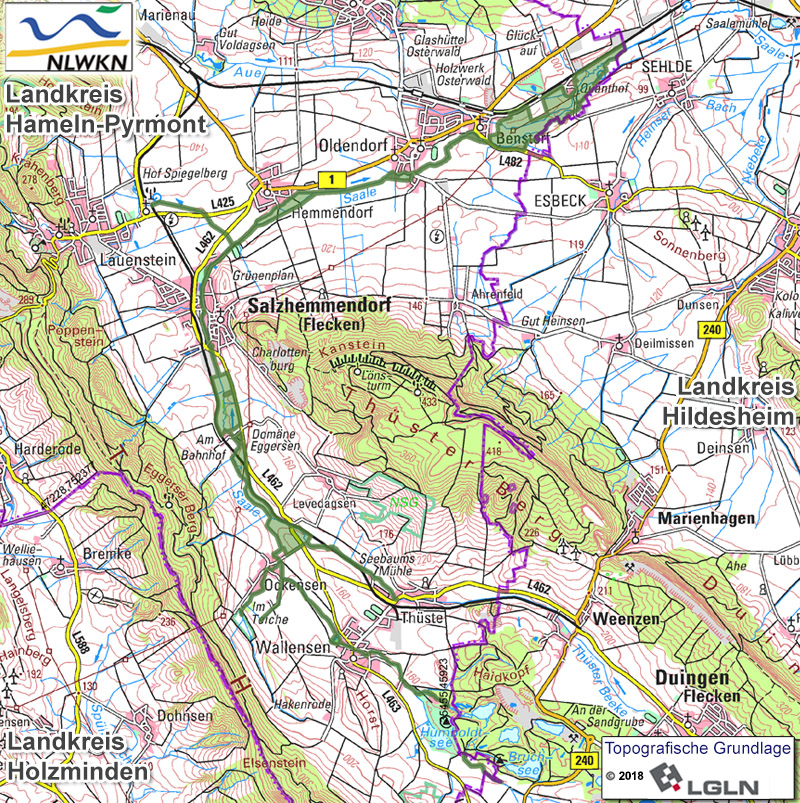 Das LSG "Saaletal" dient dem Schutz der Saale im Landkreis Hameln-Pyrmont. Ober- und Unterlauf der Saale im Landkreis Hildesheim werden duch das LSG HI 071 "Saale" geschützt.