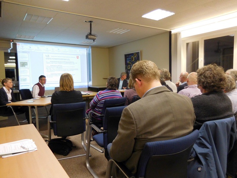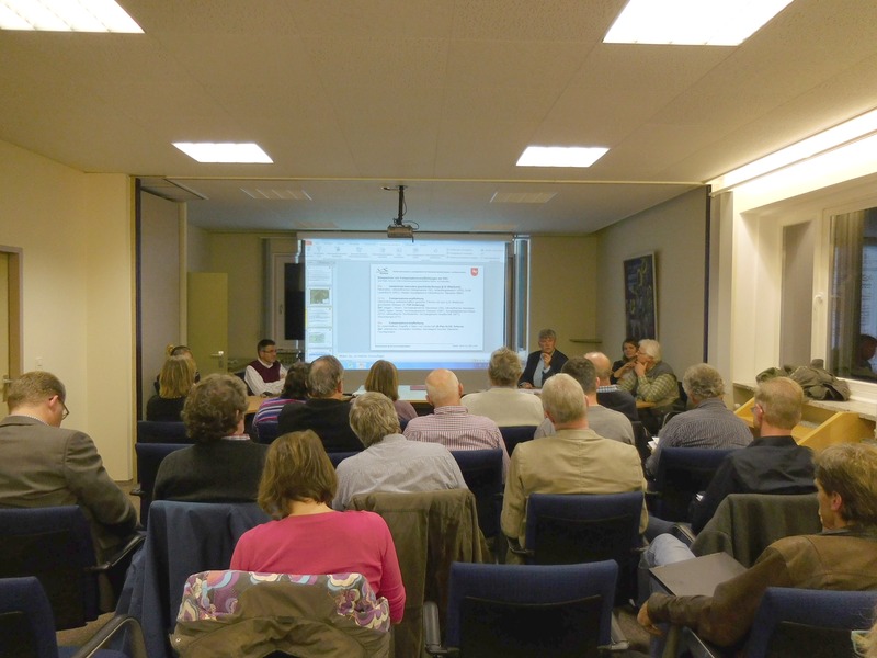 Sylvia Scholze und Helmut Dieckschäfer als Projektverantwortliche des NLWKN in Brake-Oldenburg hatten eingeladen und führten durch die Veranstaltung. Stationsmitarbeiter Heinrich Pegel stellte die naturschutzfachlichen Bestandsaufnahmen des ca. 36 ha großen Gebietes vor und lieferte Prognosen zur künftigen Entwicklung. Edda Klose von der Betriebsstelle in Aurich erläuterte daran anschließend mögliche Poldergeometrien, erforderliche Ingenieurbauwerke und weitere Rahmenbedingungen aus wasserbaulicher Sicht.
