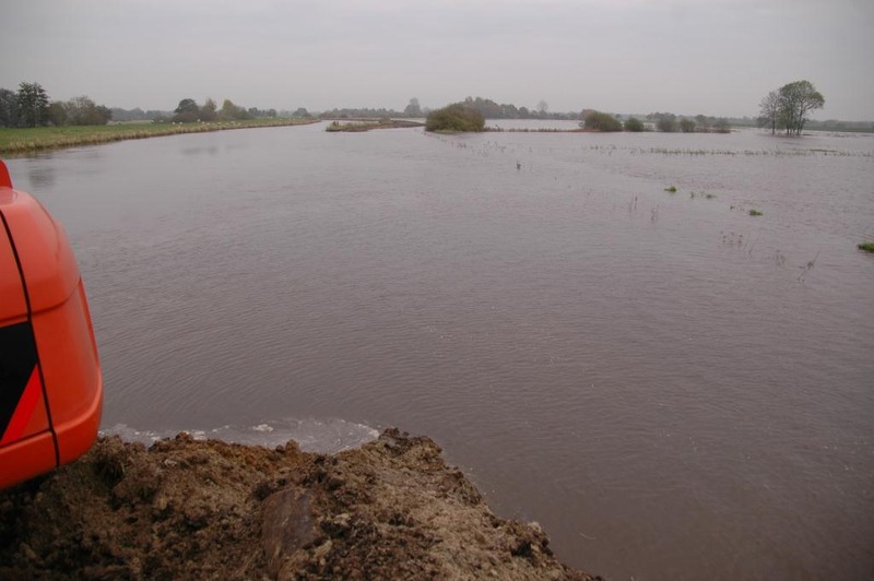 Vor wenigen Tagen war es soweit: der alte Deich am Godensholter Tief bei Barßel wurde geöffnet und die erste Tide konnte in den neuen, ca. 1 ha großen Überflutungsbereich einschwingen. Insgesamt neun Wochen sind seit dem ersten „Spatenstich“ Anfang August vergangen. Lisa Theermann, Bauleiterin des NLWKN in Leer, freut sich über die gute und fristgerechte Arbeit der Baufirma: „Etwa 9.800 m³ Sand und 3.000 m³ Klei wurden im neuen Deich verbaut. Dabei blieben die Kosten von insgesamt 285.000 Euro im kalkulierten Rahmen“.