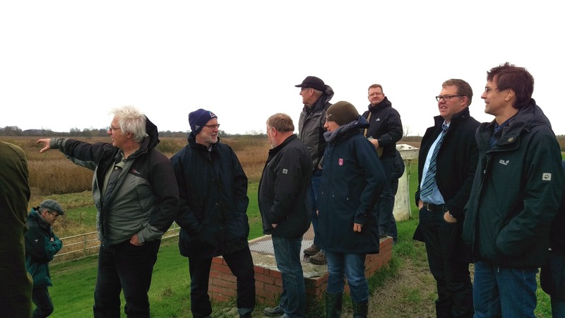 Am 16. November 2015 erläuterten die Mitarbeiter der Naturschutzstation dem vom Lenkungskreis des Masterplan Ems eingerichteten Arbeitskreis vor Ort den Planungsstand der Projekte Tidepolder Coldemüntje, Pilotpolder Vellage und Tidepolder Stapelmoor. Der Arbeitskreis, der sich im Wesentlichen aus Vertretern der Vertragsparteien des Masterplans zusammensetzt, verschaffte sich so vor Ort einen Eindruck über die Besonderheiten der jeweiligen Gebiete und den damit verbundenen Planungserfordernissen.