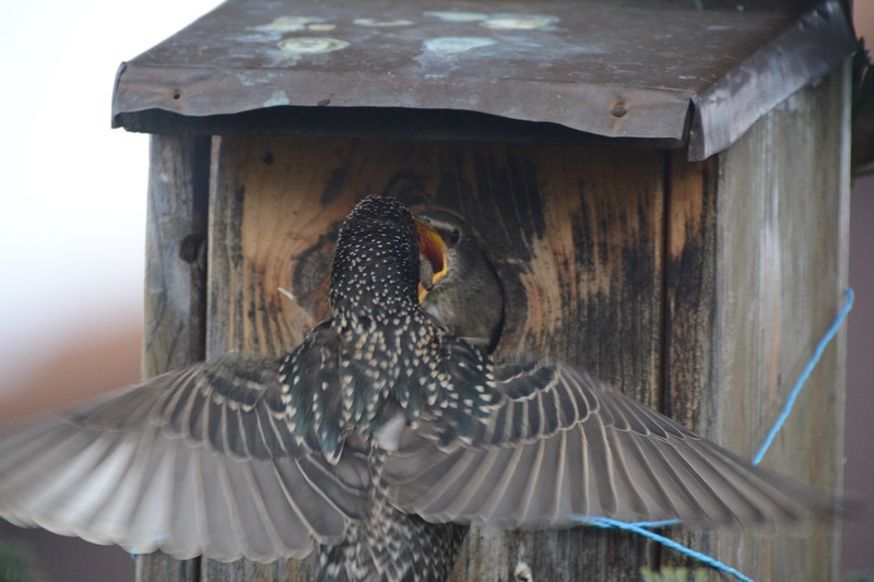 Nicht nur auf den Emswiesen können jetzt wieder junge, graubraune Stare neben den schwarzgefärbten Altvögeln beobachtet werden. Sie entstammen der diesjährigen Erstbrut, die, soeben flügge, bereits nach wenigen Tagen selbständig nach Futter sucht.