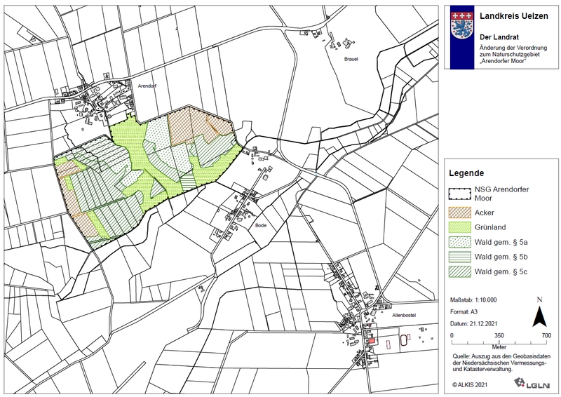 Verordnungskarte Naturschutzgebiet "Arendorfer Moor"