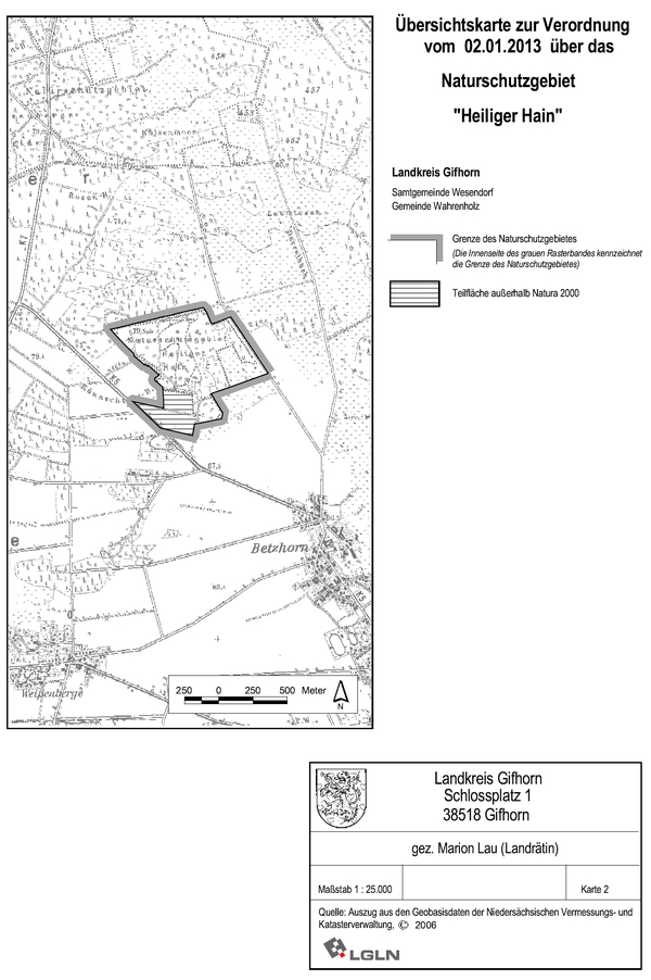 Amtliche Verordnungskarte zum Naturschutzgebiet "Heiliger Hain"
