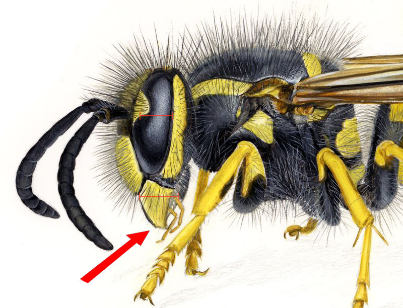 Nein, es handelt sich um eine Art der Feldwespen oder Echten Wespen, wenn in der Seitenansicht die Kieferzange breiter ist als die Augenbreite.