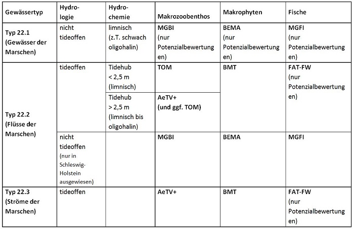 Übersicht der Bewertungsverfahren für Marschengewässer