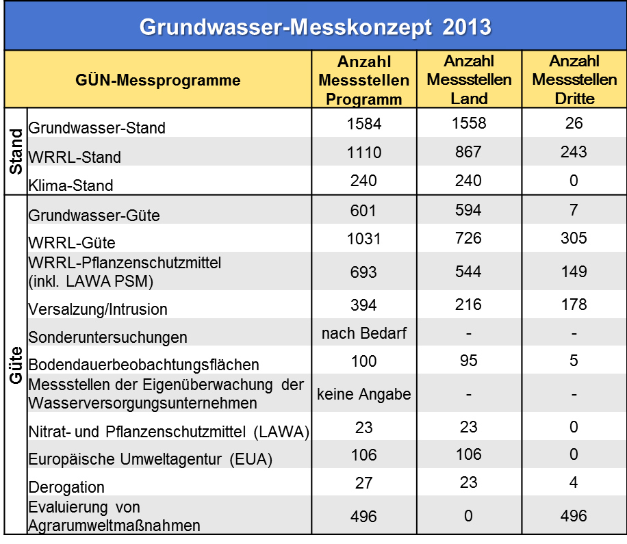 Übersicht Messprogramme 2014, Quelle: NLWKN, Gewässerüberwachungssystem Niedersachsen (GÜN)