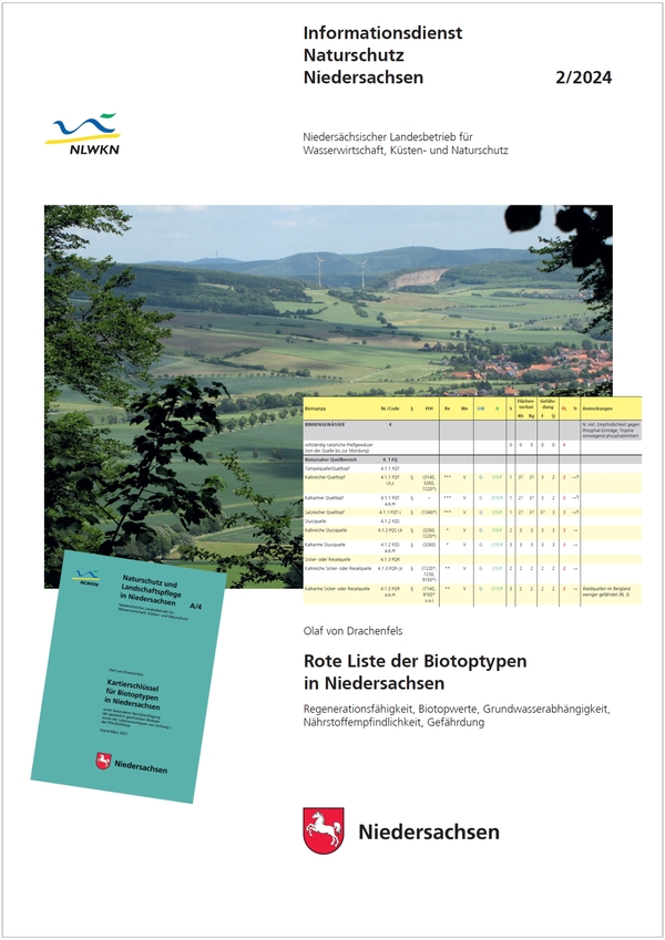 DRACHENFELS, O. v. (2024): Rote Liste der Biotoptypen in Niedersachsen – mit Einstufungen der Regenerationsfähigkeit, Biotopwerte, Grundwasserabhängigkeit, Nährstoffempfindlichkeit und Gefährdung. – Inform.d. Naturschutz Niedersachs. 43 (2) (2/24): 69-140.