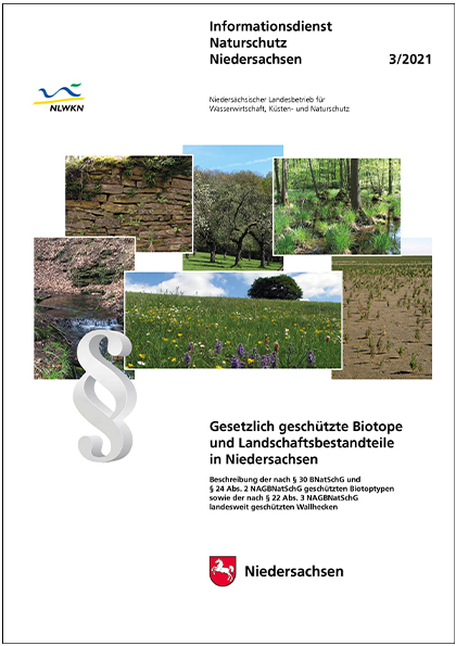 NIEDERSÄCHSISCHER LANDESBETRIEB FÜR WASSERWIRTSCHAFT, KÜSTEN- UND NATURSCHUTZ (NLWKN) (Hrsg.) (2021): Gesetzlich geschützte Biotope und Landschaftsbestandteile in Niedersachsen. – Beschreibung der nach § 30 BNatSchG und § 24 Abs. 2 NAGBNatSchG geschützten Biotoptypen sowie der nach § 22 Abs. 3 NAGBNatSchG landesweit geschützten Wallhecken. – Inform.d. Naturschutz Niedersachs. 40 (3) (3/21): 125-172.
