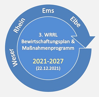 Weitere Informationen zu den Bewirtschaftungsplänen und Maßnahmenprogrammen der Flussgebiete Elbe, Weser und Ems sowie zu den niedersächsischen Beiträgen zu den Bewirtschaftungsplänen und Maßnahmenprogramme finden Sie hier: Aktualisierte WRRL Bewirtschaftungspläne und Maßnahmenprogramme für den Zeitraum 2021 bis 2027 | Nds. Landesbetrieb für Wasserwirtschaft, Küsten- und Naturschutz (niedersachsen.de).