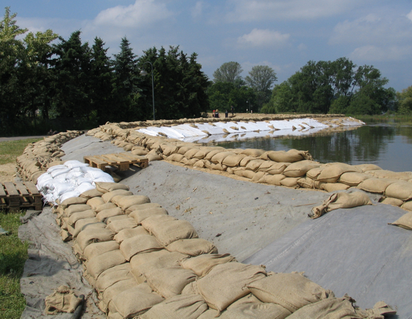 Provisorischer Deich in Neu Darchau beim Elbehochwasser Juni 2013