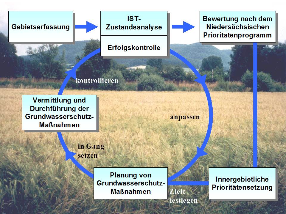 Die Informations- und Beratungsleistungen der Gewässerschutzberatung (GSB) sind neben konkreten Maßnahmen auf der Fläche ein zentraler Baustein für die Umsetzung von Grundwasserschutzmaßnahmen in Trinkwassergewinnungsgebieten (TGG). Der NLWKN fördert entsprechende Leistungen auf Grundlage der Förderrichtlinie Gewässerschutzberatung. Für Landwirte ist die Beratung ein kostenfreies Angebot und beinhaltet Veranstaltungen, Feldversuche und -besichtigungen, Rundschreiben, Gruppenberatungen und nicht zuletzt die einzelbetriebliche Beratung. Themen der einzelbetrieblichen Beratung sind beispielsweise eine Düngeplanung mit Blick auf den Grundwasserschutz und der Abschluss von Freiwilligen Vereinbarungen.