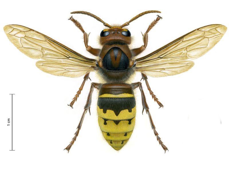 Nein, es handelt sich um eine andere Art der Echten Wespen, wenn, von oben betrachtet, der Hinterkopf nicht länger als das Auge ist.