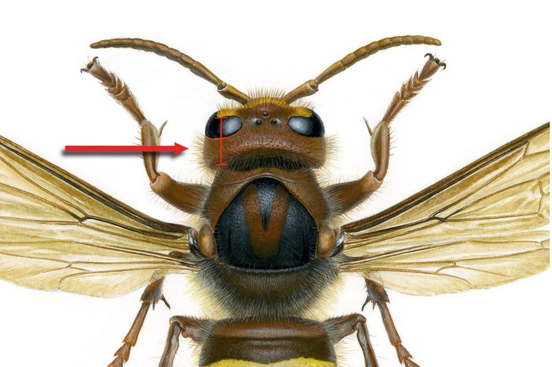 Ja, wenn, von oben betrachtet, der Hinterkopf länger als das Auge ist, dann ist es die Hornisse (Vespa crabro). (Gesamtansicht)