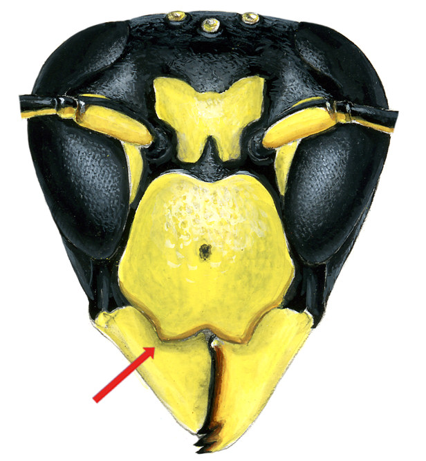 Nein, es handelt sich um eine andere Art der Echten Wespen, wenn der Kopfschild unten seitlich mehr oder weniger abgerundet, nicht verlängert ist.