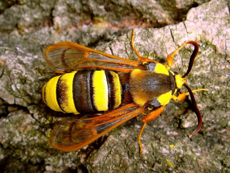 Der Hornissen-Glasflügler (Sesia apiformis) ist eine Schmetterlingsart. (Foto: R. Theunert)