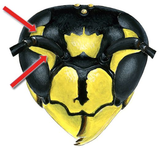Ja, wenn die Einbuchtung auf der Augeninnenseite vollständig gelb ist, handelt es sich um die Deutsche oder die Gewöhnliche Wespe.