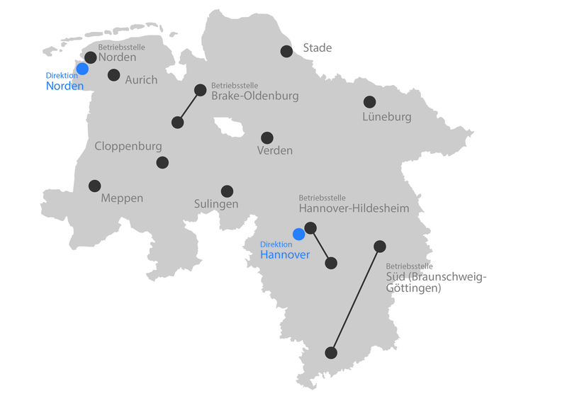 Zuständig für die Region Hannover, die Landkreise Hildesheim, Schaumburg, Hameln-Pyrmont, Holzminden und die Städte Hannover und Hameln.